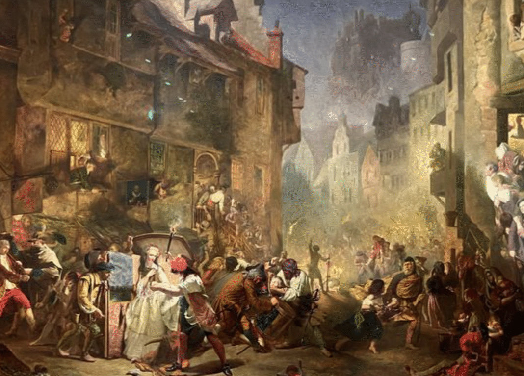 Фатальною іскрою стала справа трьох відчайдухів – Ендрю Вілсона, Вільяма Голла, Джорджа Робертсона. Засуджені за зухвале пограбування митного офіцера в Піттенвімі, вони фактично здійснили «експропріацію» щодо того, хто за думкою натовпу, сам обкрадав бідноту. Напруга сягнула апогею: влада не збирається виявляти милосердя. Спроба втечі в’язнів, їхній відчайдушний опір і подальша поведінка лише підігріли настрій столичних вулиць.